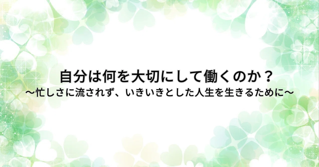 第65回 自分は何を大切にして働くのか?~忙しさに流されず、いきいきとした人生を生きるために~