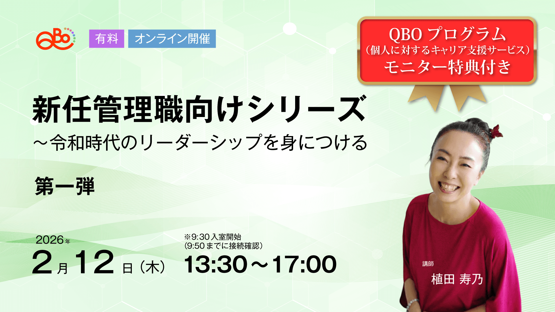 このセミナーでは、AI時代にこそ必要な「ワークエンゲージメント」や「EQリーダーシップ」の考え方について、自己診断や体験学習を通して身につけていきます。いきいきとリーダーシップを発揮できるよう、初めてのマネジメントで不安に感じる点も解消していきます。